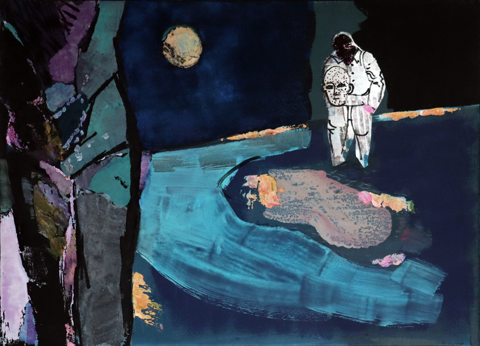 MANN IM LOCH, Emulsionsfarbe auf Leinwand, 50×70 cm, 2022