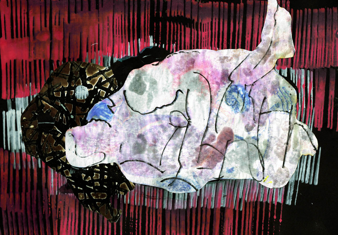 NÄCHTLICHE JAGD AM OKAWANGO, 2023, 120×95 cm, Emulsionsfarbe auf Leinwand