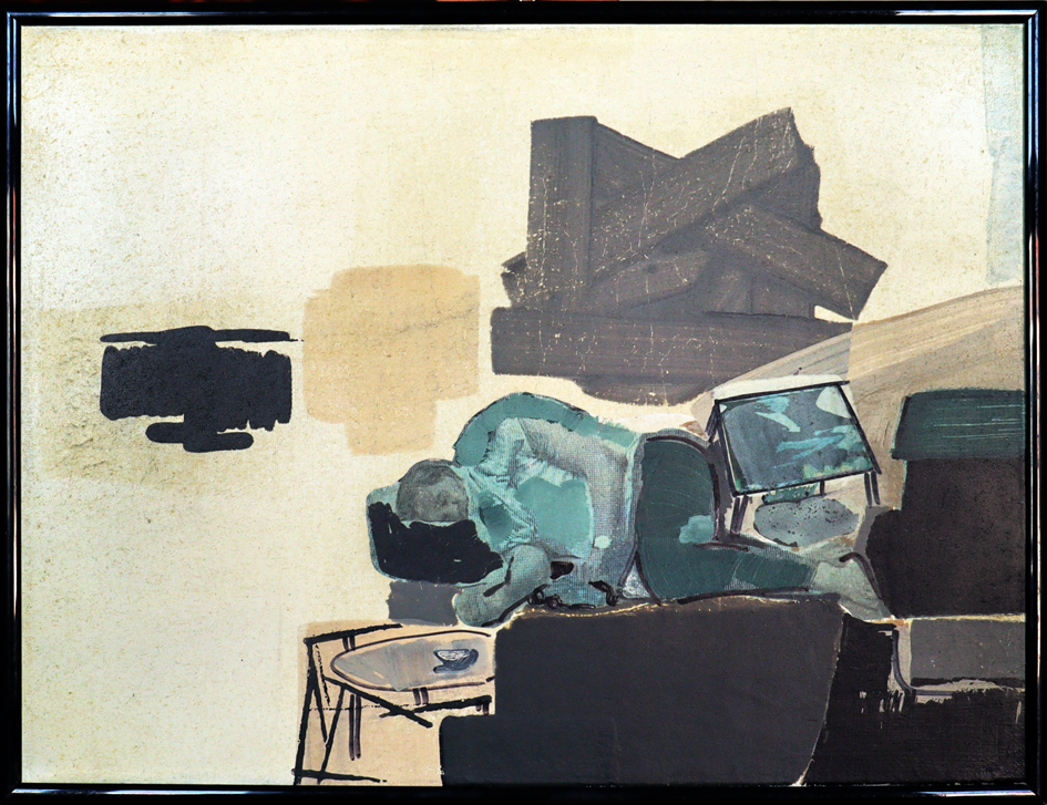 MANN IN DER HALBSCHALE, Emulsionsfarbe auf Leinwand, 130 x 140 cm, 2019